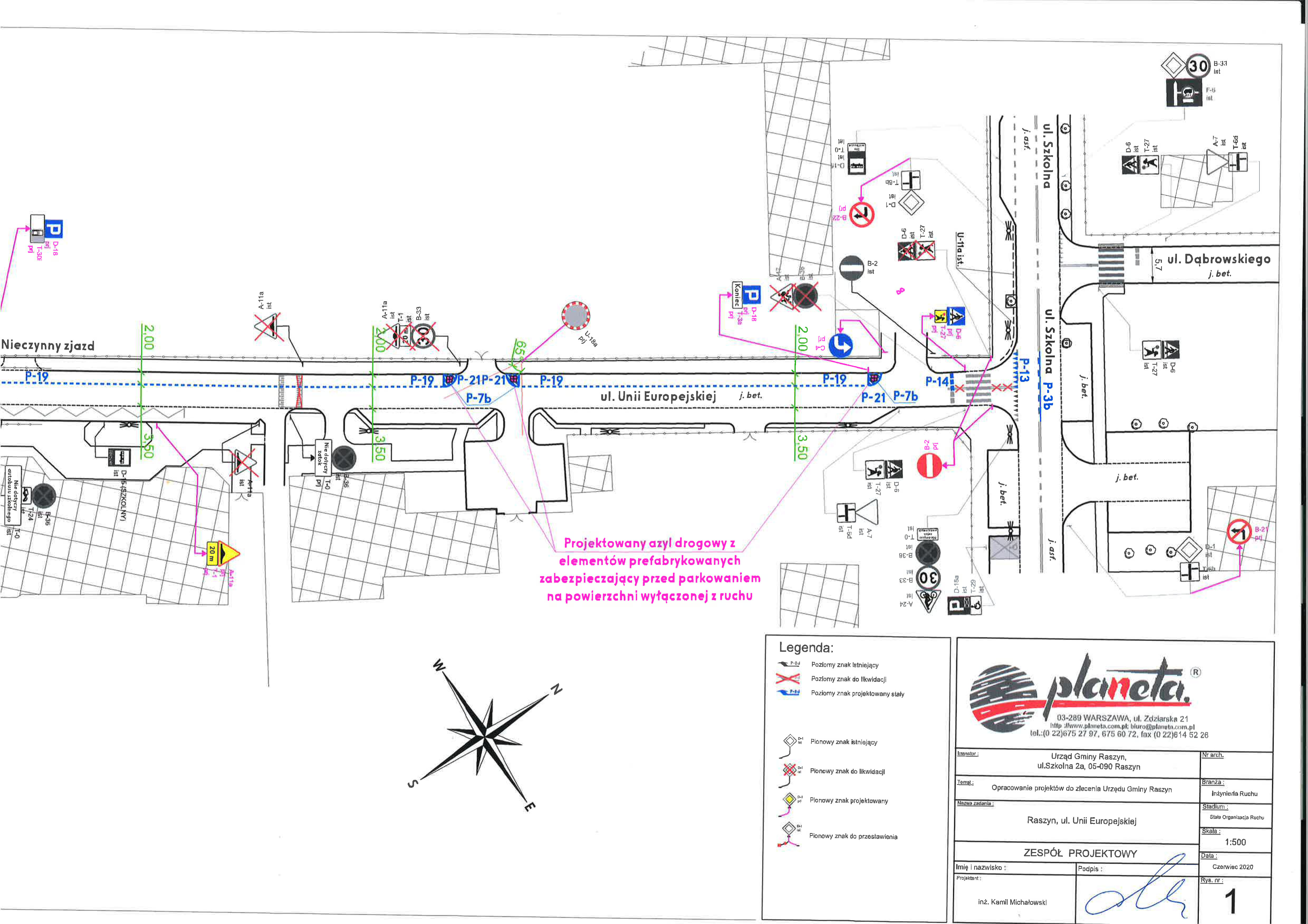 Projekt stałej organizacji ruchu w ul. Unii Europejskiej – rys. 1 w formacie pdf